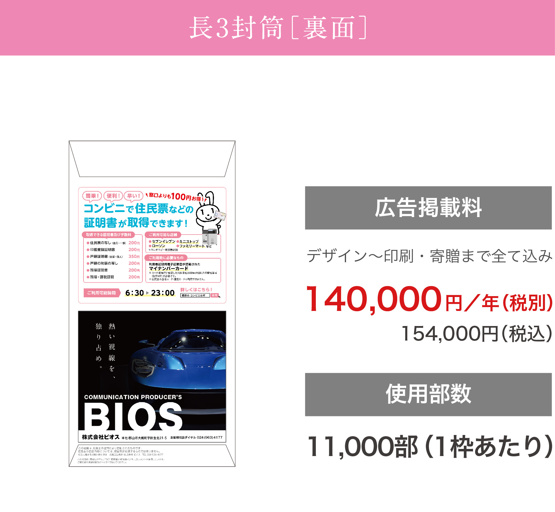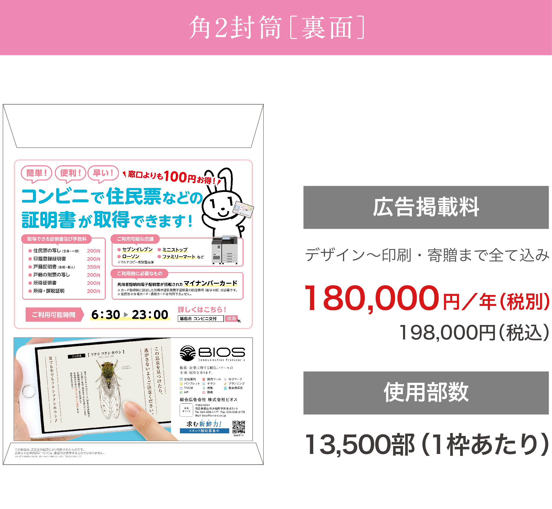福島市|地域密着型 自治体広告 広告入り窓口用封筒 広告掲載について