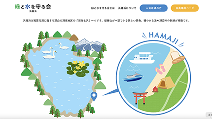地域の湖を守る活動内容が伝わるよう、イラストやアイコンを中心に構成したデザインとしました。